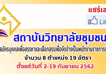 สิงหาคม 19, 2019 spgroupthailand สถาบันวิทยาลัยชุมชน เปิดรับสมัครสอบเป็นพนักงานราชการ จำนวน 19 อัตรา รับสมัครทางอินเทอร์เน็ต ตั้งแต่วันที่ 2 – 19 กันยายน 2562