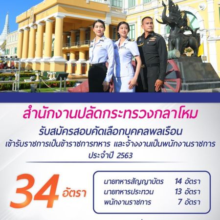 สำนักงานปลัดกระทรวงกลาโหม เตรียมเปิดรับสมัครสอบบรรจุบุคคลเข้ารับราชการ และเป็นพนักงานราชการ ประจำปี 2563 รับสมัครทางอินเทอร์เน็ต ตั้งแต่วันที่ 1 เมษายน – 20 พฤษภาคม 2563