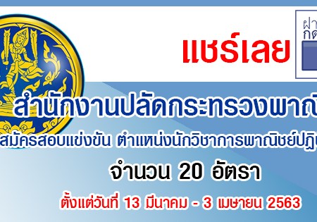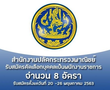 สำนักงานปลัดกระทรวงพาณิชย์ เปิดรับสมัครสอบเป็นพนักงานราชการ จำนวน 8 อัตรา รับสมัครทางอินเทอร์เน็ต ตั้งแต่วันที่ 20 – 26 พฤษภาคม 2563