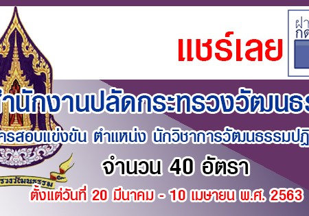 สำนักงานปลัดกระทรวงวัฒนธรรม เปิดรับสมัครสอบเพื่อบรรจุเข้ารับราชการ จำนวน 40 อัตรา รับสมัครทางอินเทอร์เน็ต ตั้งแต่วันที่ 20 มีนาคม – 10 เมษายน 2563
