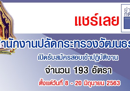 สำนักงานปลัดกระทรวงวัฒนธรรม เปิดรับสมัครสอบเข้าปฏิบัติงาน จำนวน 193 อัตรา รับสมัครทางอินเทอร์เน็ต ตั้งแต่วันที่ 8 – 20 มิถุนายน 2563