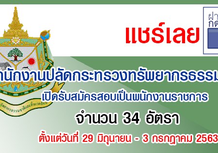สำนักงานปลัดกระทรวงทรัพยากรธรรมชาติและสิ่งแวดล้อม เปิดรับสมัครสอบเป็นพนักงานราชการ จำนวน 34 อัตรา รับสมัครทางอินเทอร์เน็ต ตั้งแต่วันที่ 29 มิถุนายน – 3 กรกฎาคม 2563