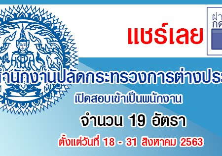 สำนักงานปลัดกระทรวงการต่างประเทศ เปิดสอบเข้าเป็นพนักงาน จำนวน 19 อัตรา รับสมัครด้วยตนเอง และทางไปรษณีย์ ตั้งแต่วันที่ 18 – 31 สิงหาคม 2563