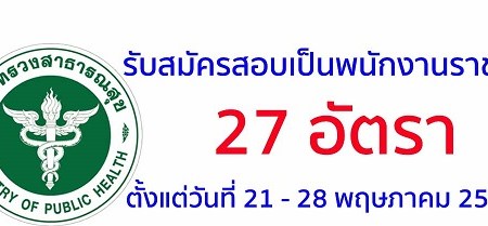 สำนักงานปลัดกระทรวงสาธารณสุข เปิดรับสมัครสอบเป็นพนักงานราชการ จำนวน 27 อัตรา รับสมัครทางอินเทอร์เน็ต ตั้งแต่วันที่ 21 – 28 พฤษภาคม 2562