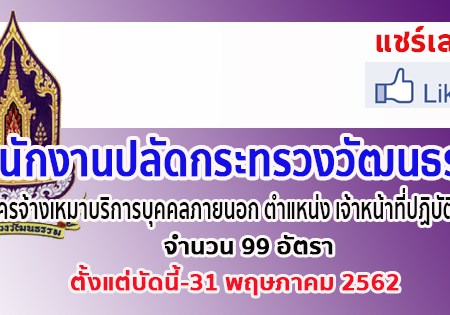 สำนักงานปลัดกระทรวงวัฒนธรรม เปิดรับสมัครสอบเพื่อเลือกสรรเป็นพนักงานราชการ จำนวน 577 อัตรา รับสมัครทางอินเทอร์เน็ต ตั้งแต่วันที่ 28 มีนาคม – 3 เมษายน 2562