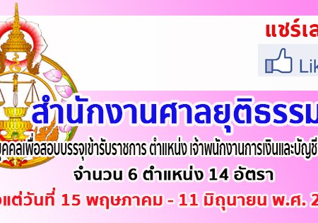 พฤศจิกายน 4, 2019 spgroupthailand สำนักงานศาลยุติธรรม เปิดรับสมัครสอบเพื่อบรรจุเข้ารับราชการ จำนวน 6 อัตรา รับสมัครทางอินเทอร์เน็ต ตั้งแต่วันที่ 26 ตุลาคม – 15 พฤศจิกายน 2562