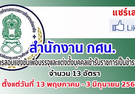 พ.ค. 6, 2019 spgroupthailand สำนักงาน กศน.เปิดสอบบุคคลเข้ารับราชการเป็นข้าราชการครูและบุคลากรทางการศึกษา ตำแหน่ง บุคลากรทางการศึกษาอื่น ตำแหน่ง บรรณารักษ์ จำนวน 13 อัตรา ตั้งแต่วันที่ 13 พฤษภาคม – 3 มิถุนายน 2562