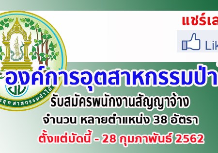 มกราคม 30, 2019 spgroupthailand องค์การอุตสาหกรรมป่าไม้ รับสมัครพนักงานสัญญาจ้าง จำนวน หลายตำแหน่ง 38 อัตรา ตั้งแต่บัดนี้ – 28 กุมภาพันธ์ 2562