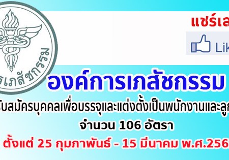 กุมภาพันธ์ 20, 2019 spgroupthailand องค์การเภสัชกรรม รับสมัครบุคคลเพื่อบรรจุและแต่งตั้งเป็นพนักงานและลูกจ้าง จำนวน 106 อัตรา ตั้งแต่ 25 กุมภาพันธ์ – 15 มีนาคม พ.ศ.2562