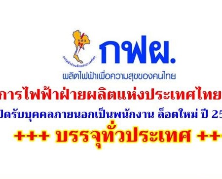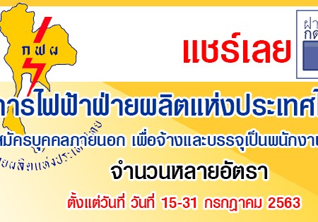 มิถุนายน 25, 2020 spgroupthailand การไฟฟ้าฝ่ายผลิตแห่งประเทศไทย (กฟผ.) เตรียมเปิดรับสมัครบุคคลภายนอก เพื่อจ้างและบรรจุเป็นพนักงานประจำปี 2563 ระหว่างวันที่ 15-31 กรกฎาคม 2563