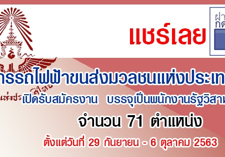 รฟม. เปิดรับสมัครงาน 71 ตำแหน่ง (29 กันยายน – 6 ตุลาคม 2563)